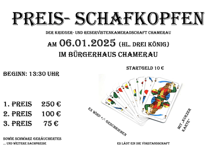 Geldpreise richten sich nach Teilnehmerzahl Für das leibliche Wohl ist bestens gesorgt!